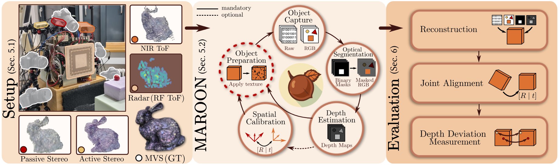 title={MAROON: A Dataset for the Joint Characterization of Near-Field High-Resolution Radio-Frequency and Optical Depth Imaging Techniques},